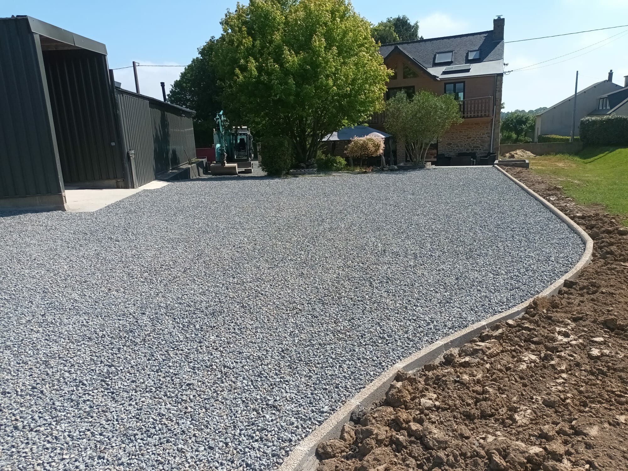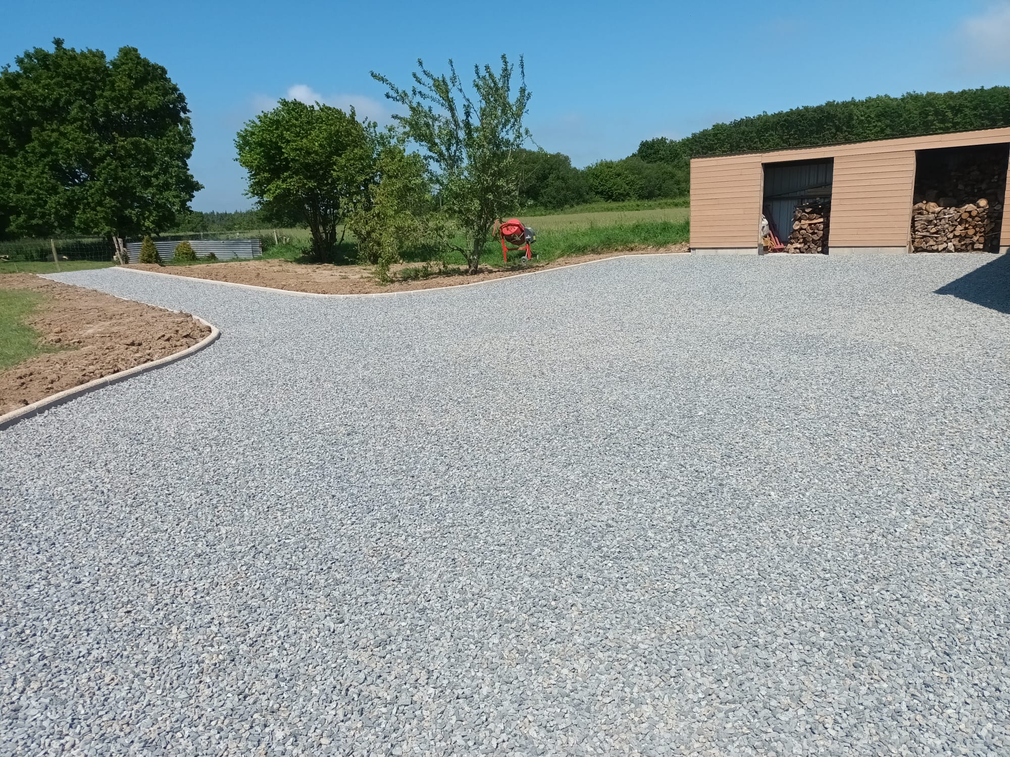 Réaménagement d'une cour pour des clients à Ploeuc-Sur-Lié. Retrouvez cette réalisation à travers différentes photos ! Nous remercions les clients pour leur confiance !