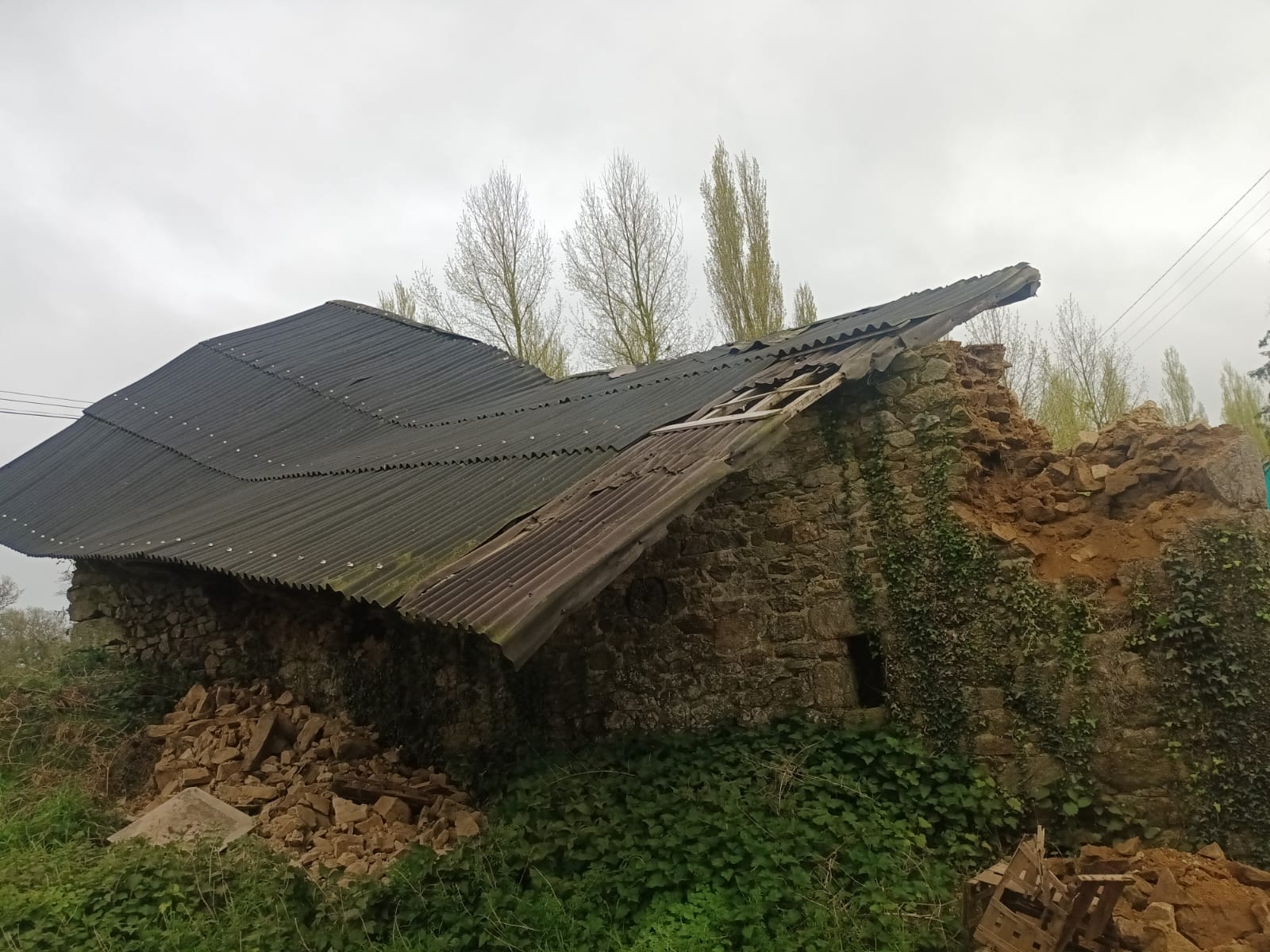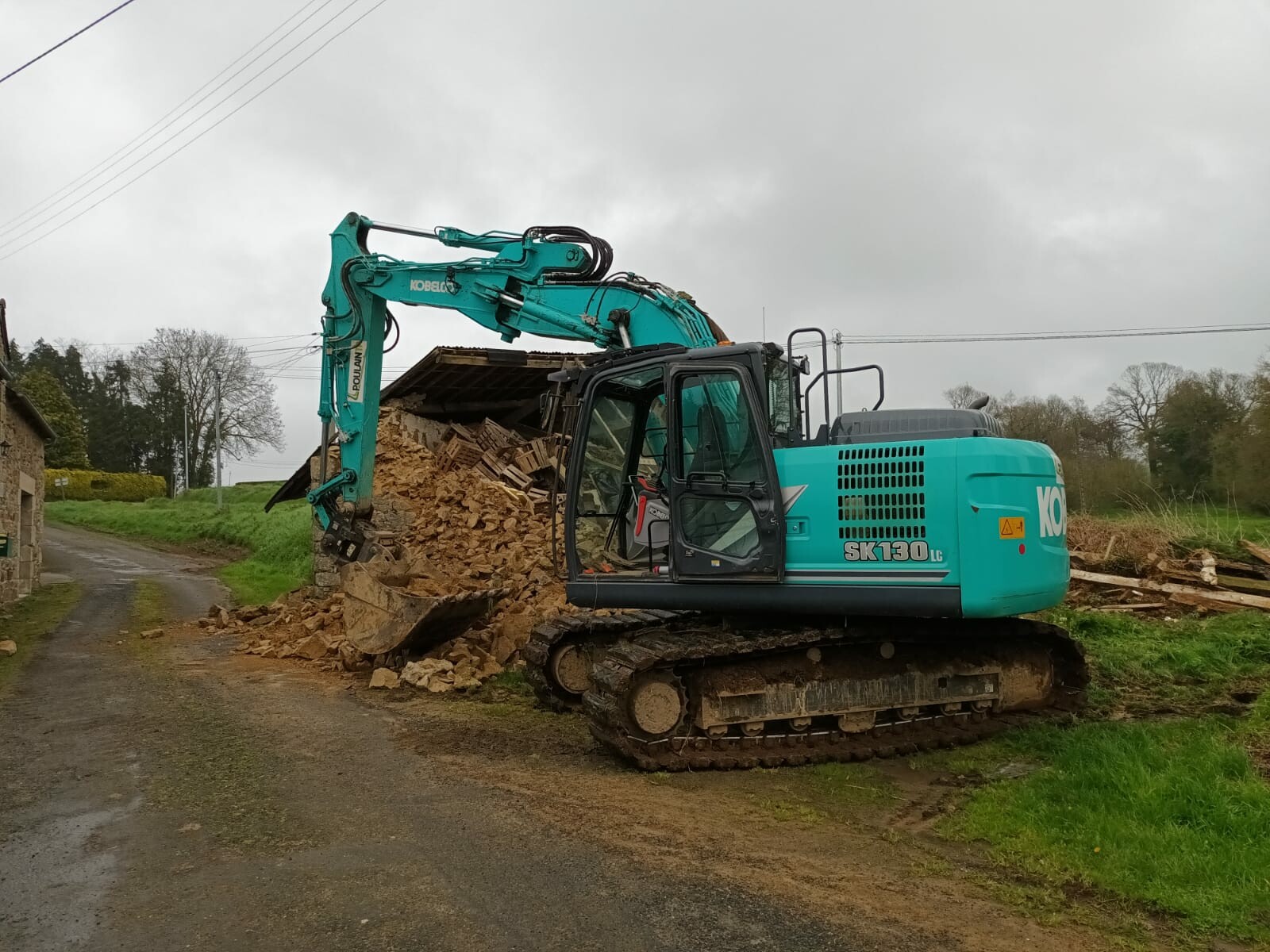 Démolition dune vielle grange à Saint-Brandan
