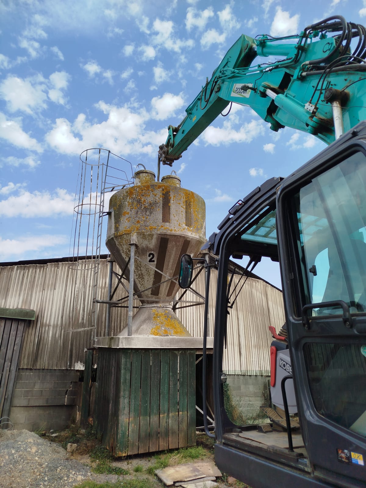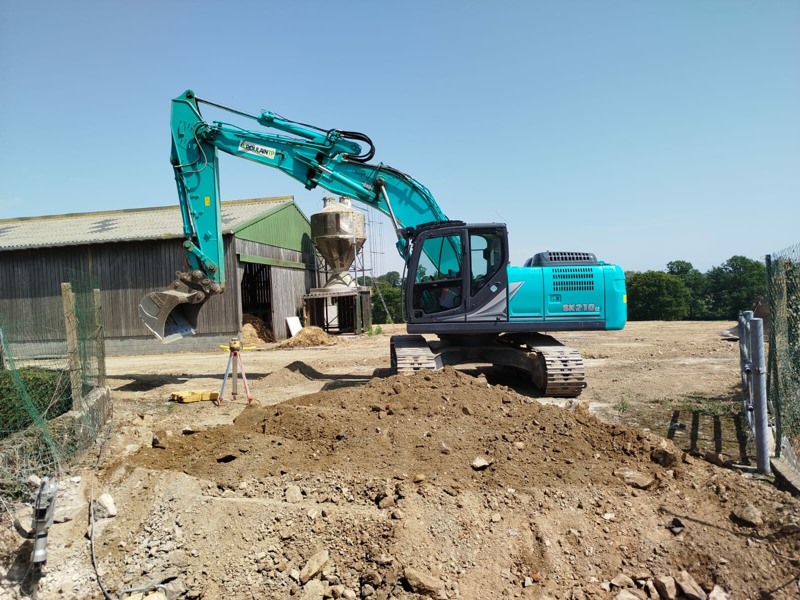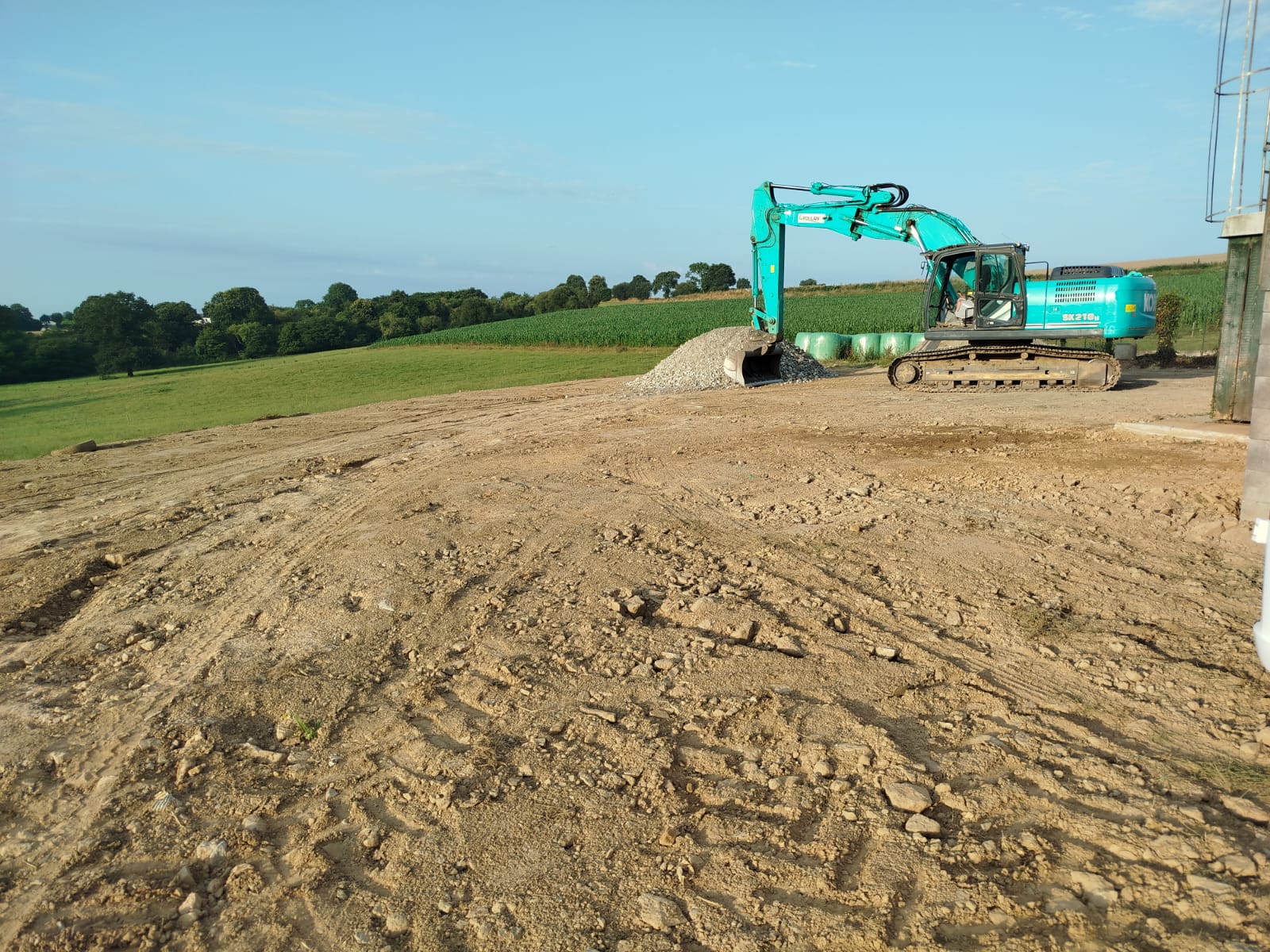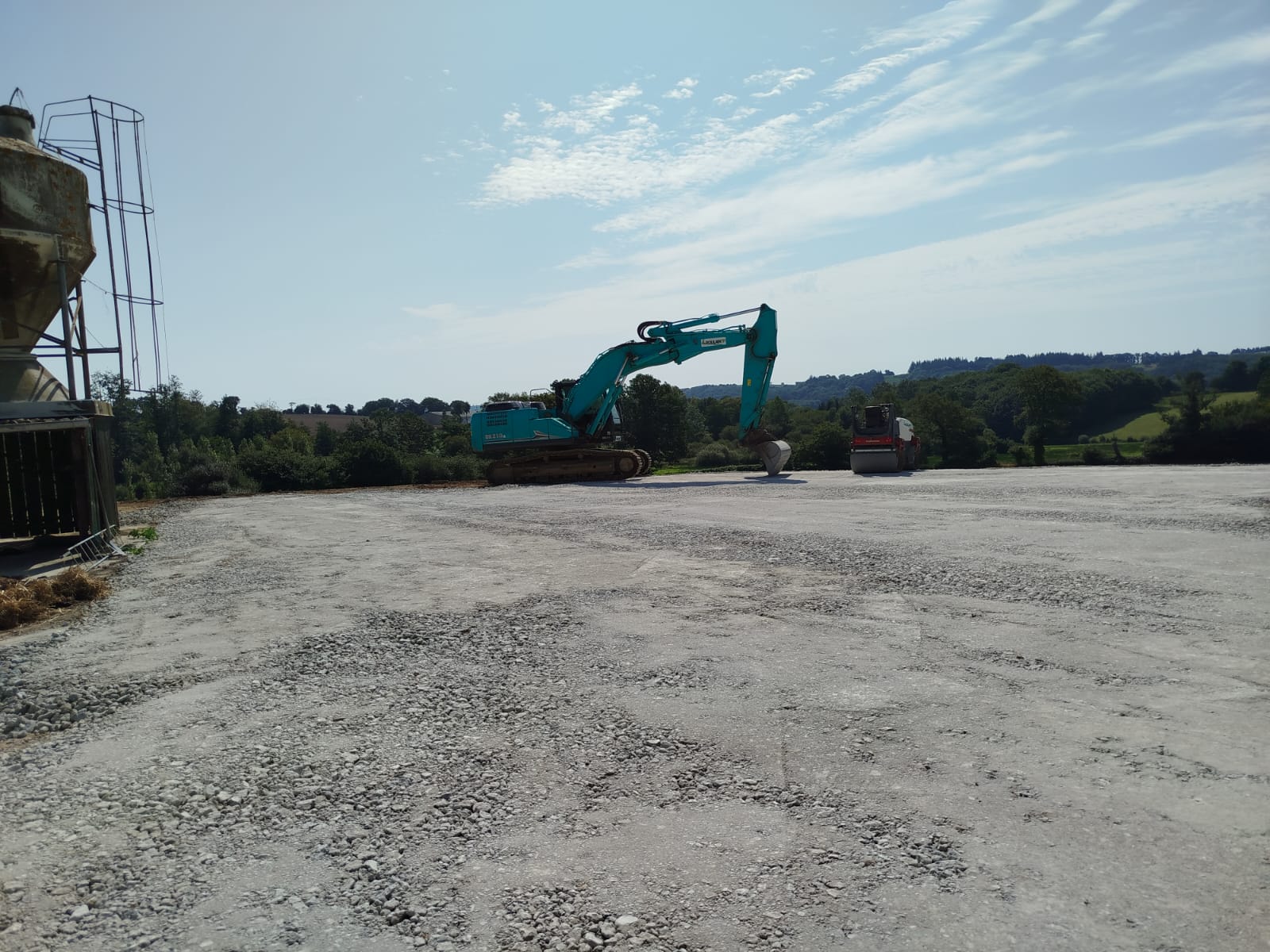 Nous avons utilisé la pelle 21 tonnes pour effectuer un empierrement dans une ferme à Hénon.