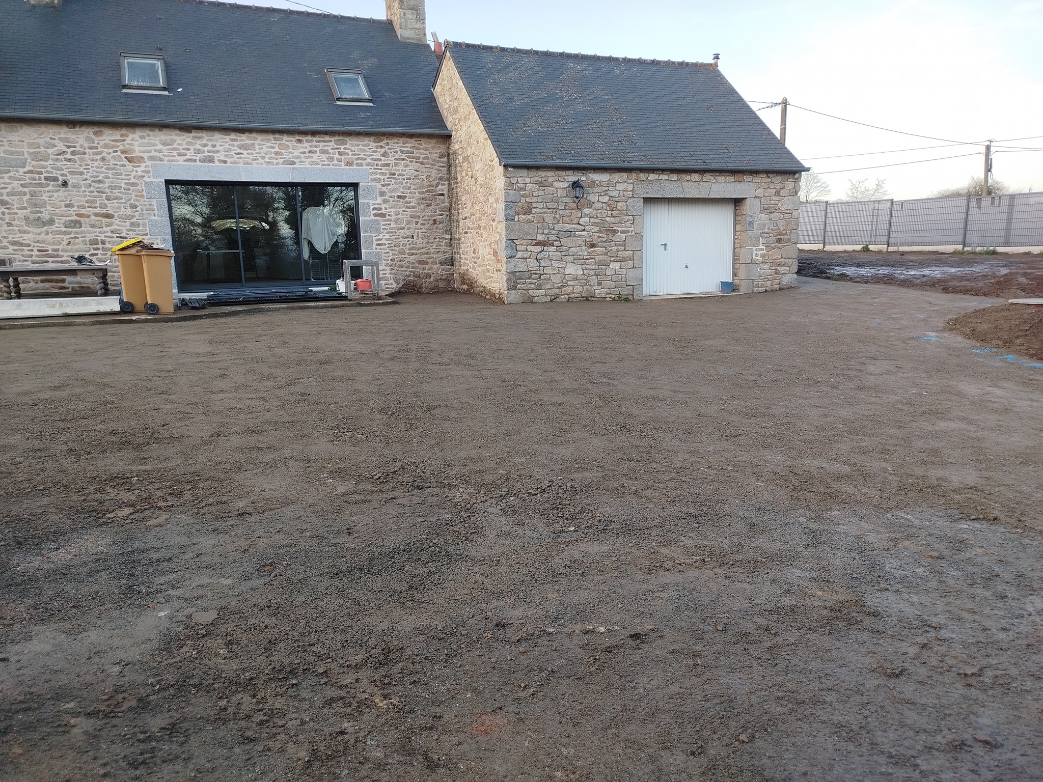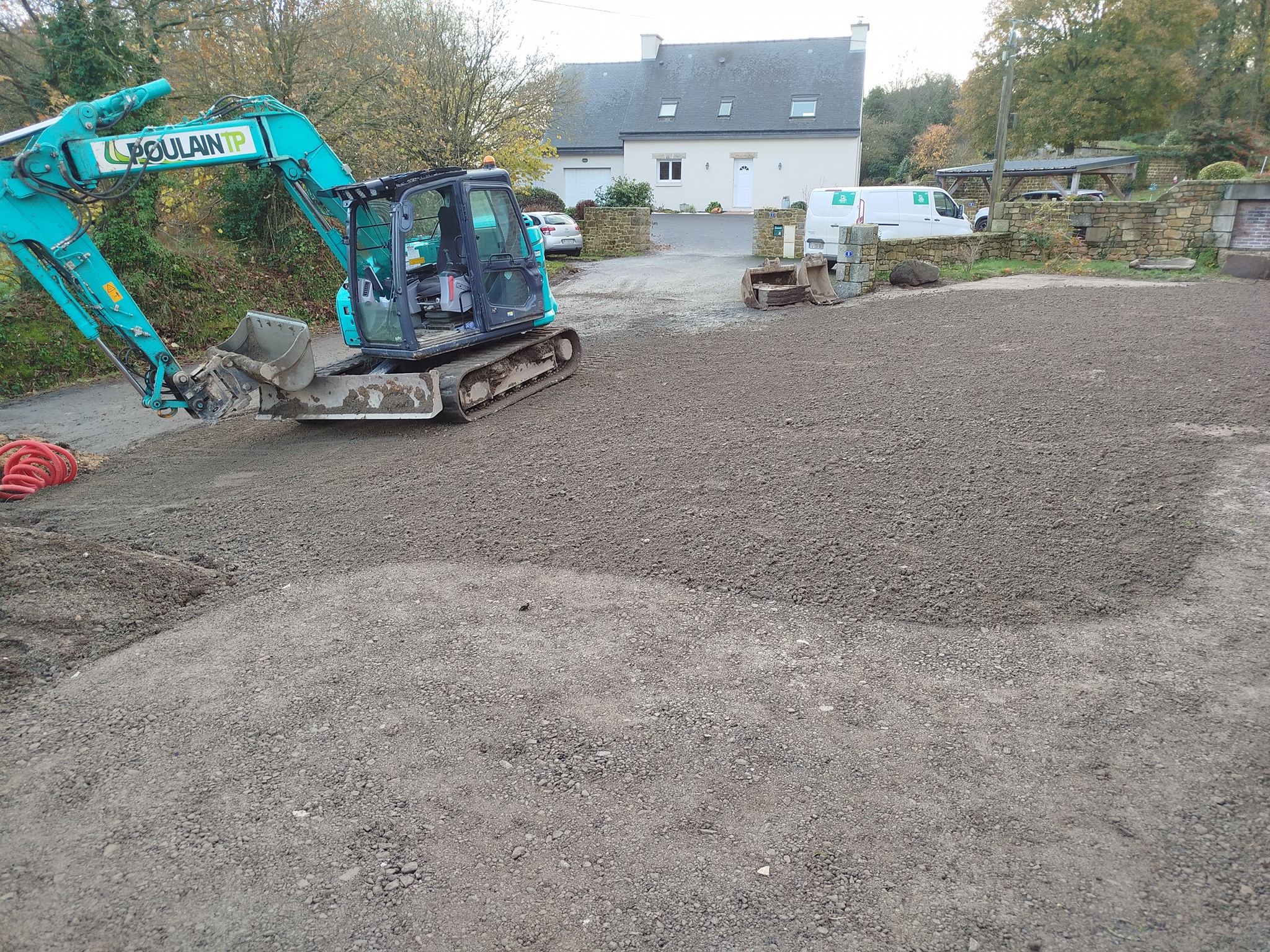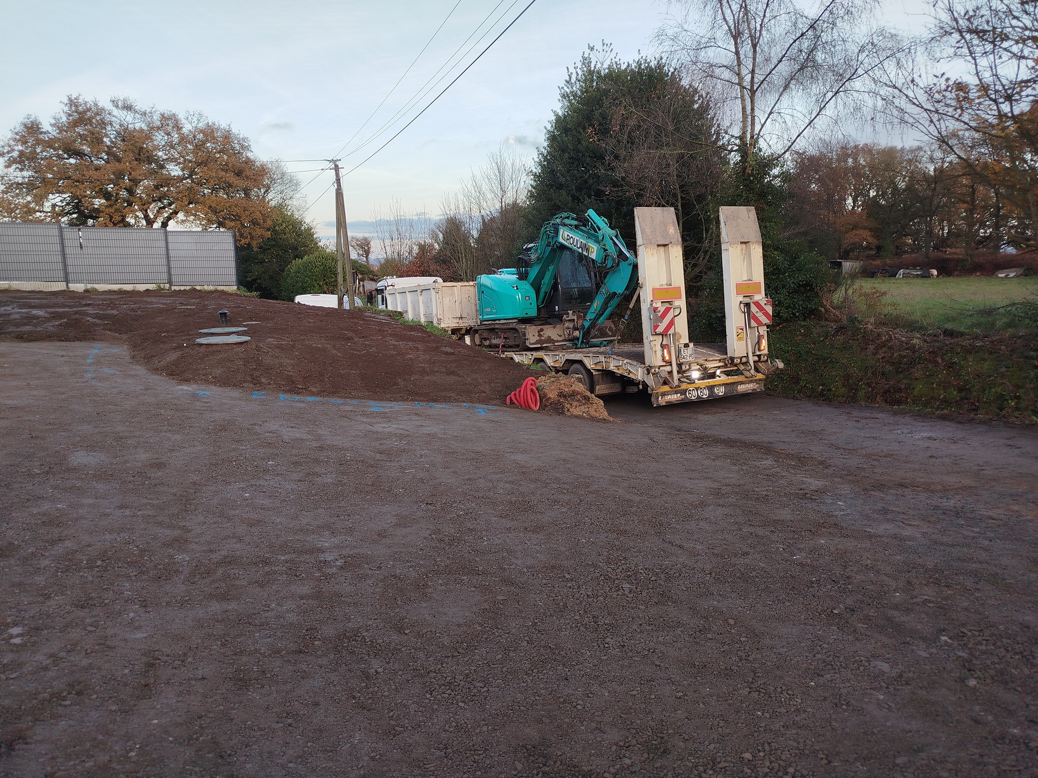 - Terrassement et préparation de la zone d’implantation