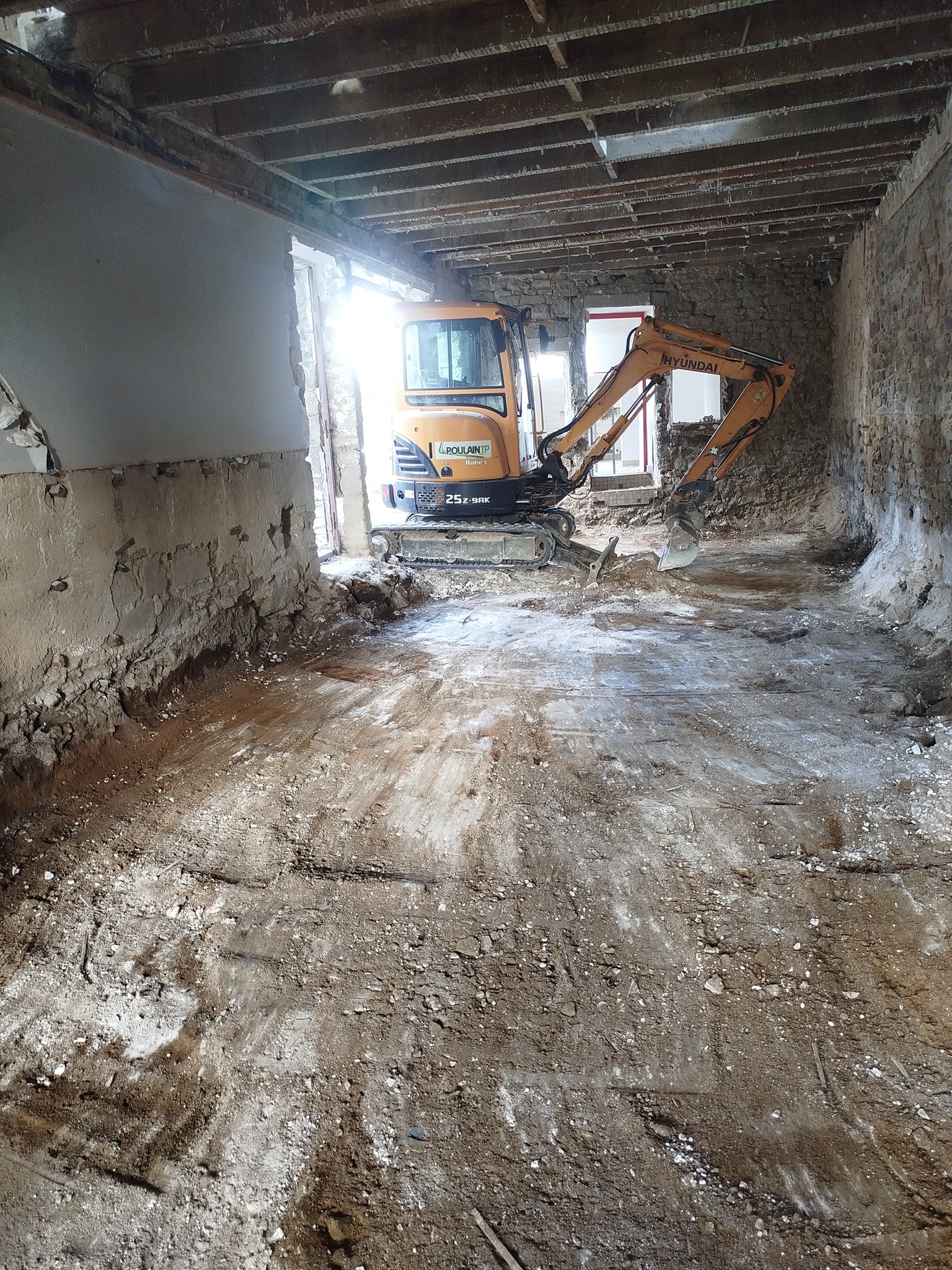 - Le décaissement des sols intérieurs, avec évacuation des matériaux