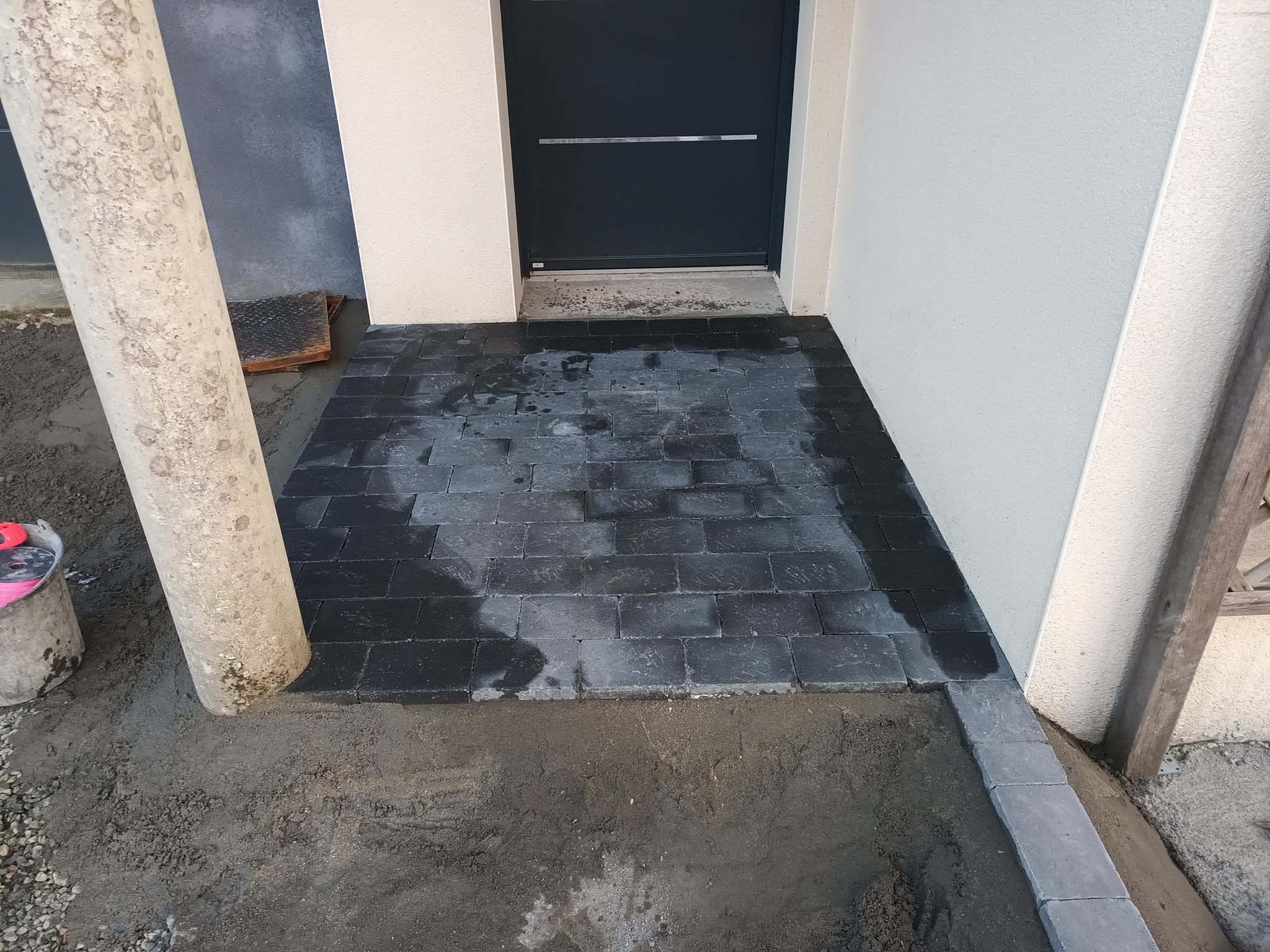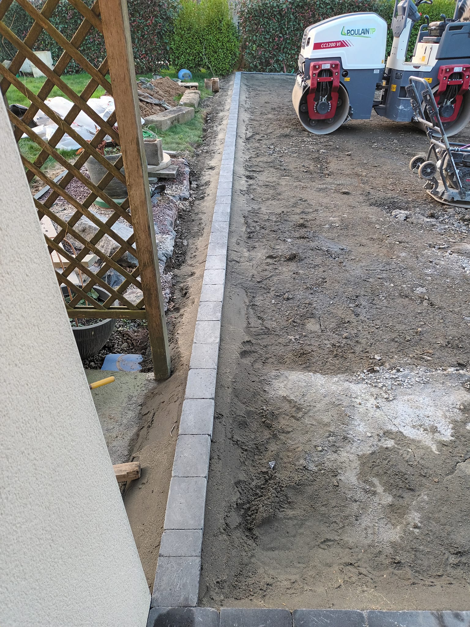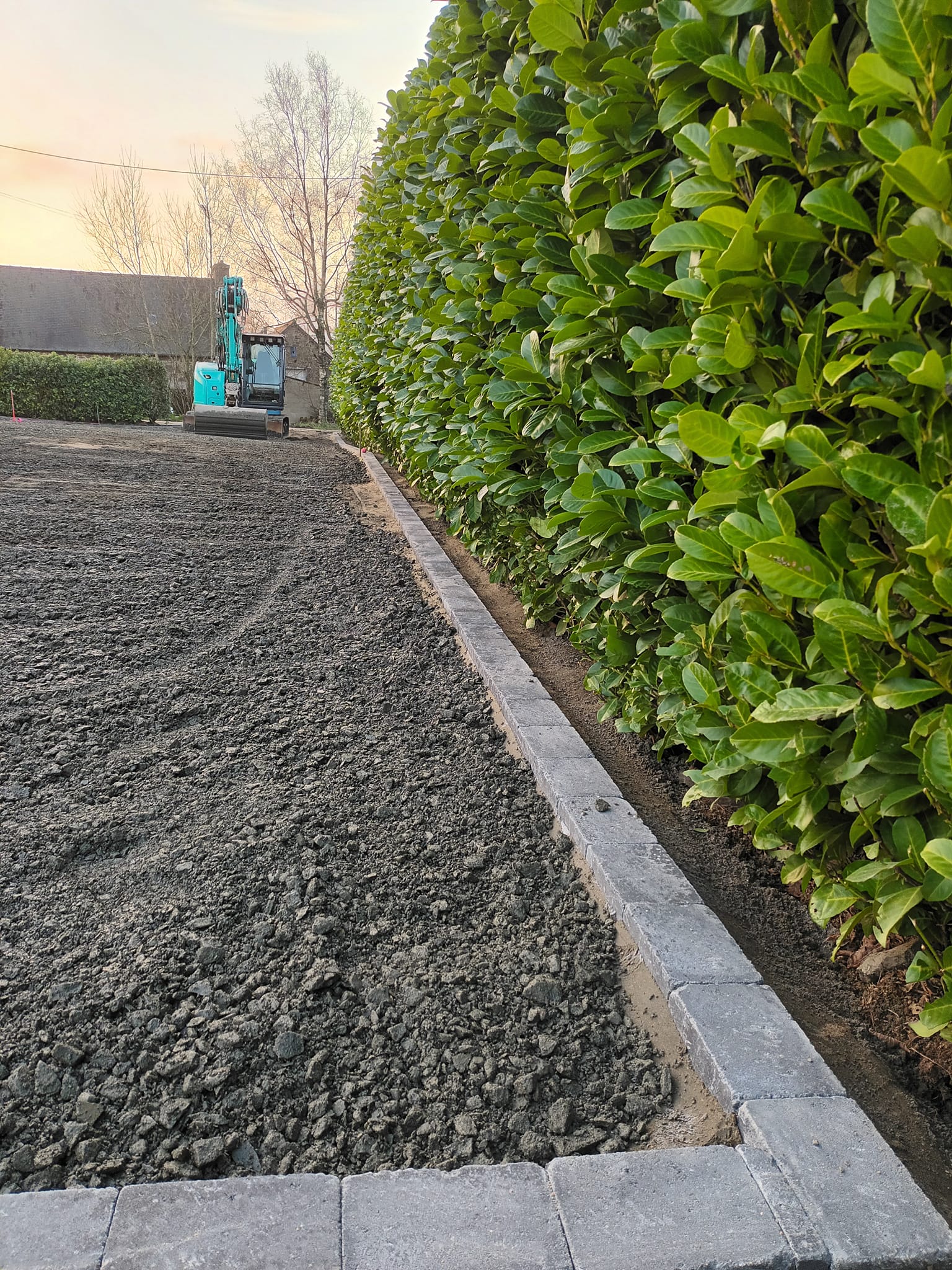Chantier pour la préparation d'une cour pour une enrobée. Nous avons effectué la pose de pavés ainsi que l'empierrement.