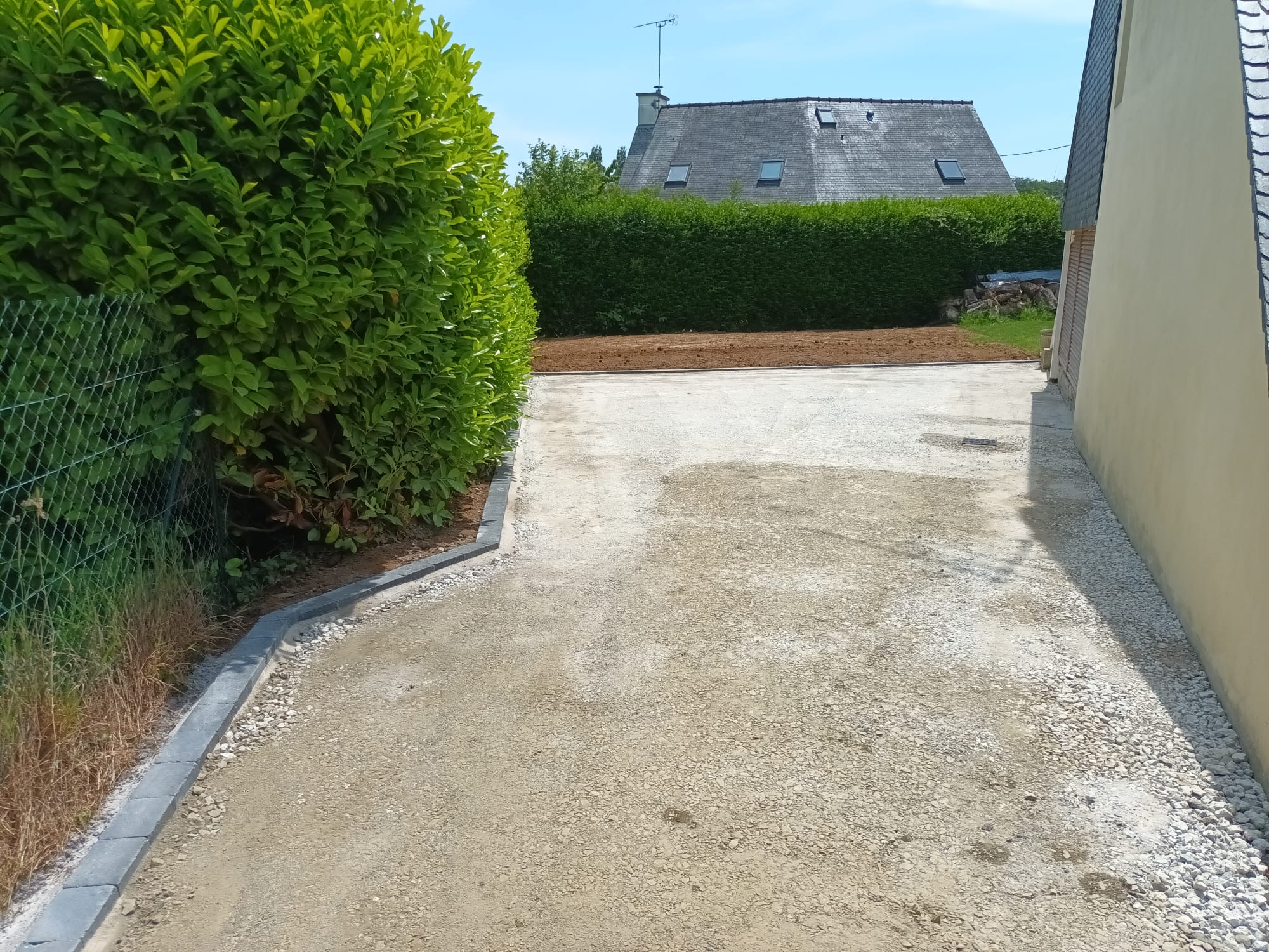 Préparation d'une cour pour enrobée réalisée par Poulain TP Conan Camard - Saint-Carreuc