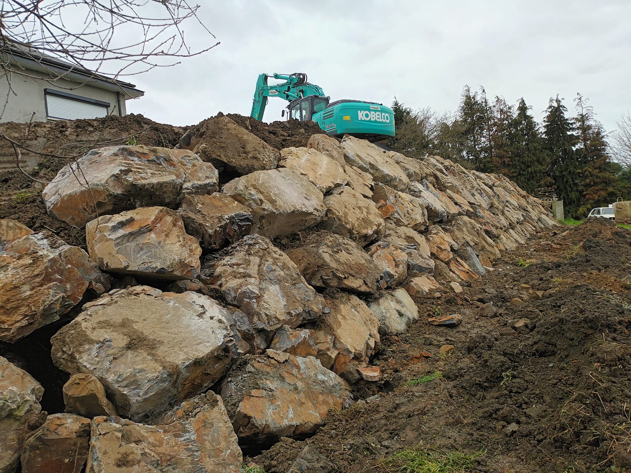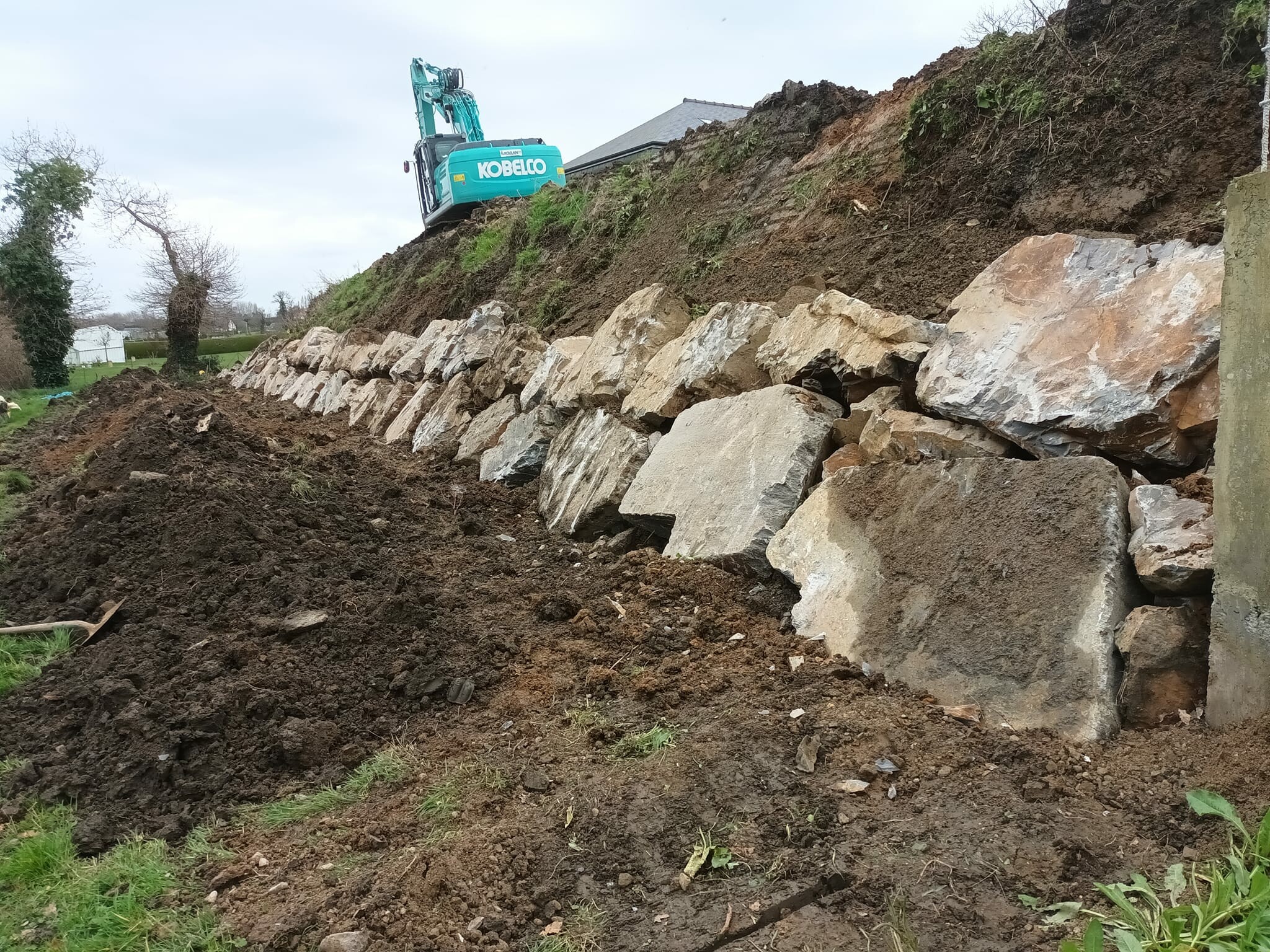 Réalisation d'un enrochement par Poulain TP Conan Camard