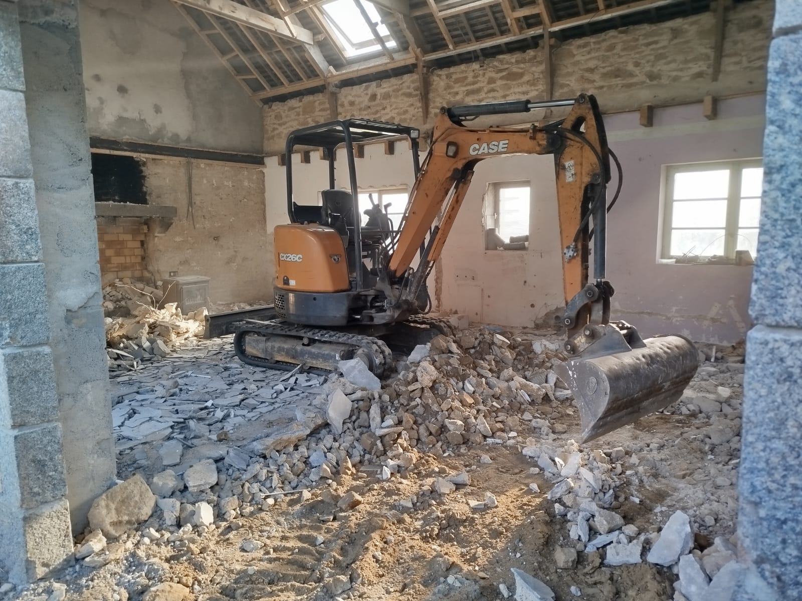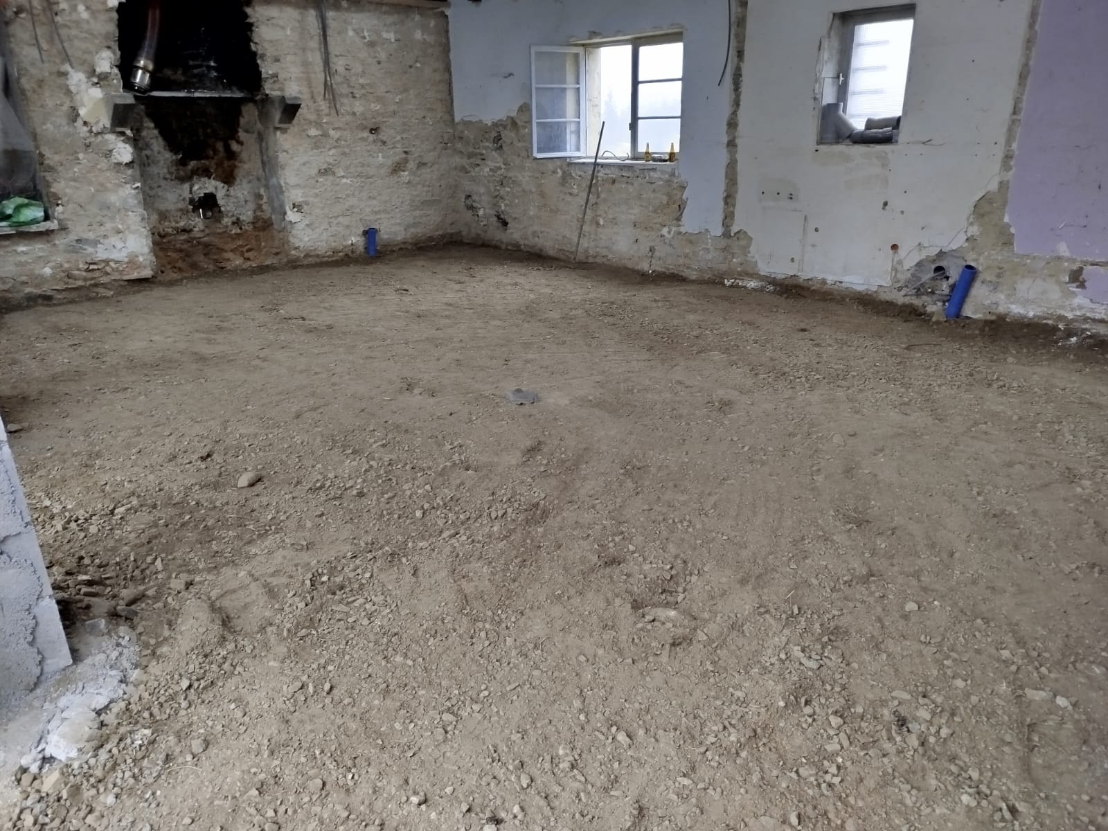 Préparation d'une dalle béton à Saint-Brandan pour une rénovation complète.
