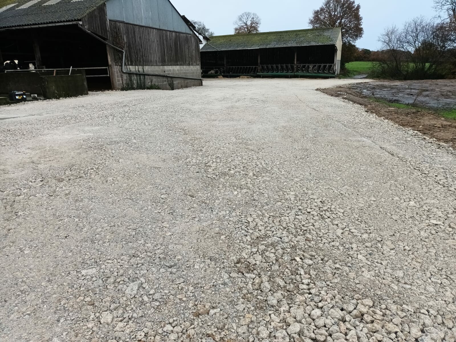 Empierrement en 0/45 dans une ferme à Plédran et réalisation d'un trottoir bovin
