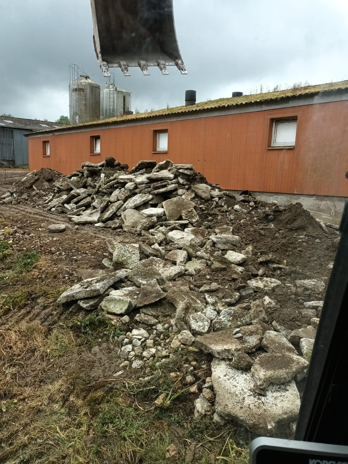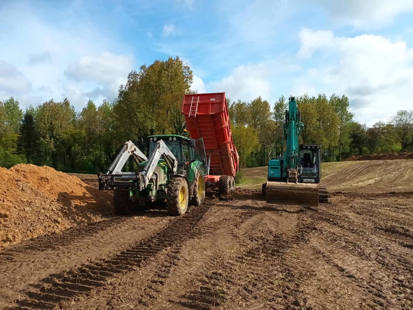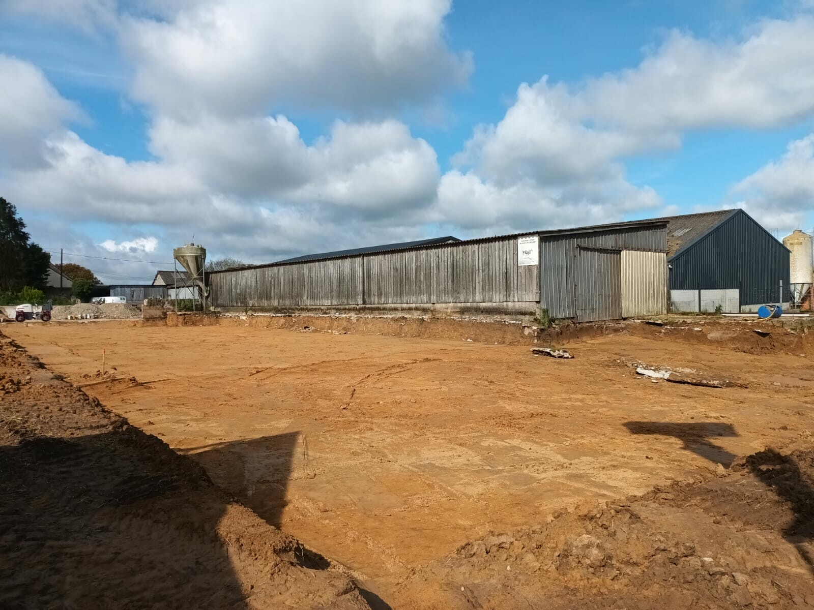 Dernièrement chez Poulain TP Conan Camard : terrassement d'un silo à maïs et empeirrement tout autour du bâtiment d'élevage à Plémy