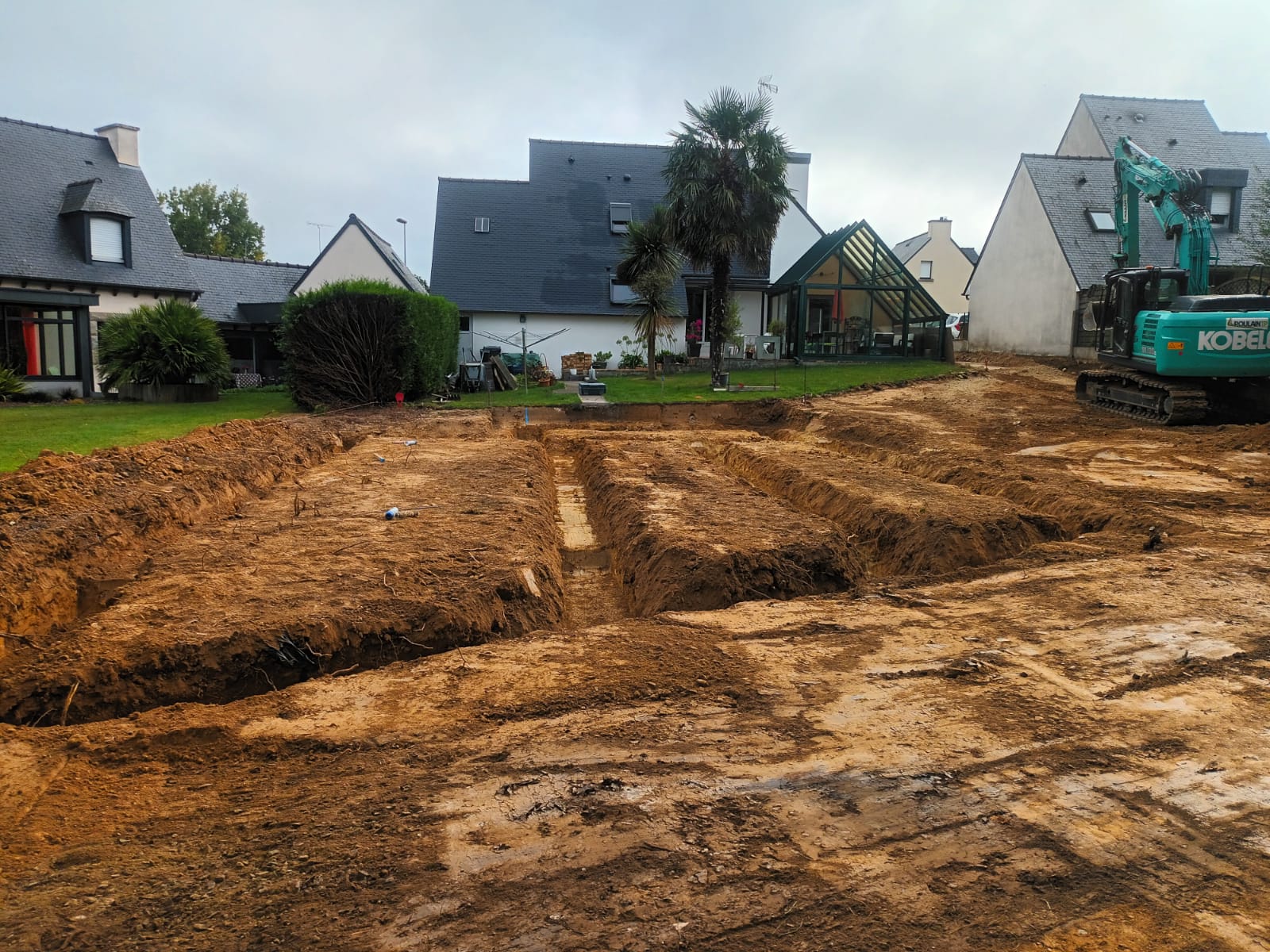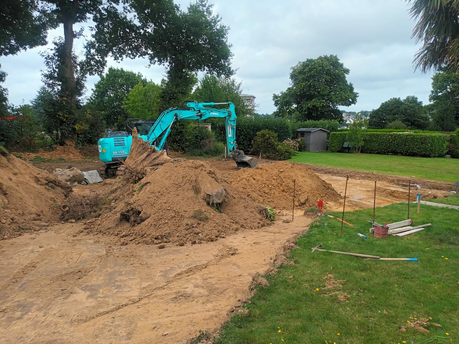 L'équipe de Poulain TP Conan Camard a procédé au terrassement d'un pavillon à Lamballe. Nous avons également fait la pose de réseaux ainsi que l'évacuation de déblais.